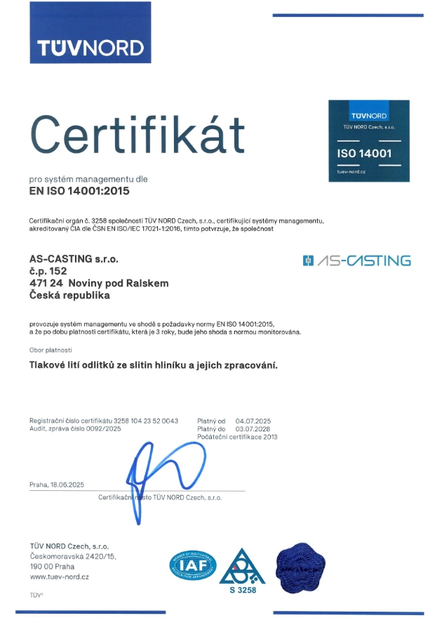 Vedení společnosti AS-CASTING s.r.o. v návaznosti na svoji celkovou strategii a na základě analýzy interních a externích aspektů a oprávněných zájmů zainteresovaných stran vyhlašuje tuto Politiku společnosti, jejímž hlavním cílem je stabilizace a další zlepšování získané pozice na trhu a to zaměřením se zejména na maximální spokojenost zákazníka, spolu s vytvářením podmínek pro dobrou prosperitu společnosti a její trvale udržitelný rozvoj a ochranu životního prostředí a BOZP a PO při všech podnikatelských aktivitách společnosti